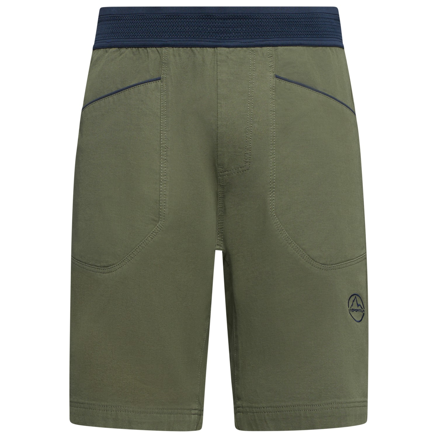 La Sportiva, c’est la marque italienne de référence en escalade. Leur Flatanger, c’est un short conçu spécifiquement pour grimper. Pas un short de rando adapté à l’escalade, un vrai vêtement d’escalade. Le tissu, c’est du coton épais mélangé à de l’élasthanne. Suffisant pour laisser respirer, mais assez costaud pour supporter les frictions du rocher.